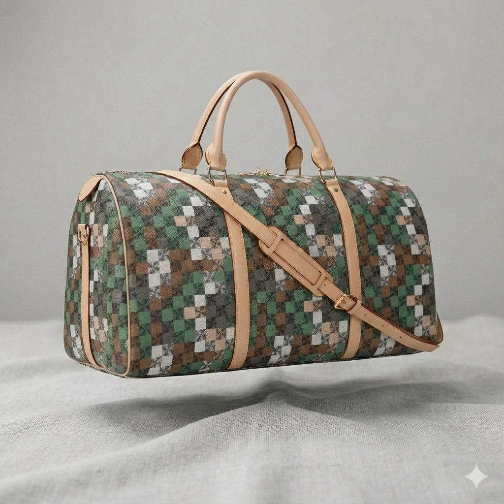 This trendy weekender bag features a unique multicolor block pattern that instantly elevates any outfit. Designed with both style and practicality in mind, it offers a roomy interior, easily fitting clothing, towels, bottles, cosmetics, gadgets, and more. It closes securely with a smooth zipper and includes a convenient inner pocket for small accessories like your phone, passport, or cards. Soft handles and an adjustable shoulder strap provide comfortable carrying, while the interior pockets keep everything neatly in place. Perfect for weekends away, the gym, or everyday chic travel.